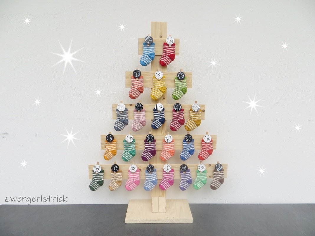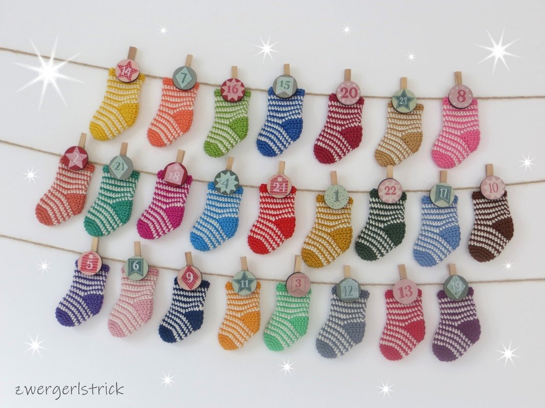 Die Söckchen können einfach und schnell aus Wollresten gehäkelt werden und eignen sich perfekt zur Verwendung für einen Adventskalender.