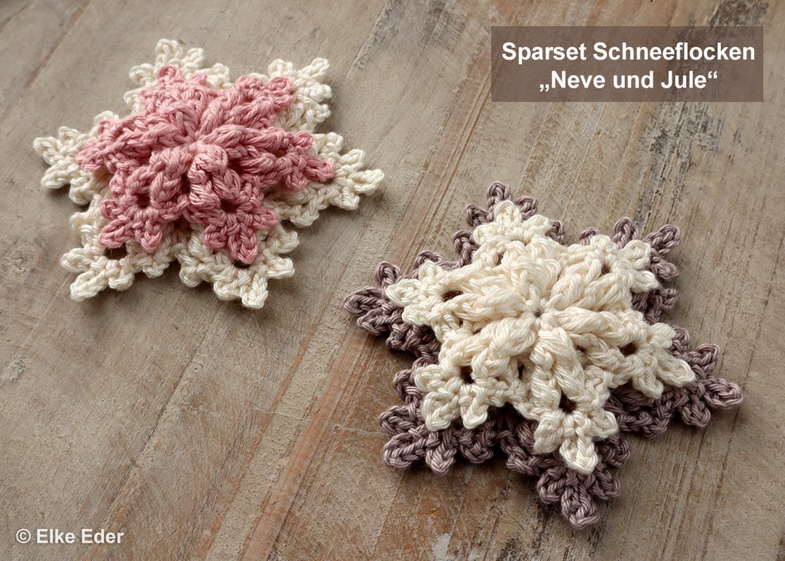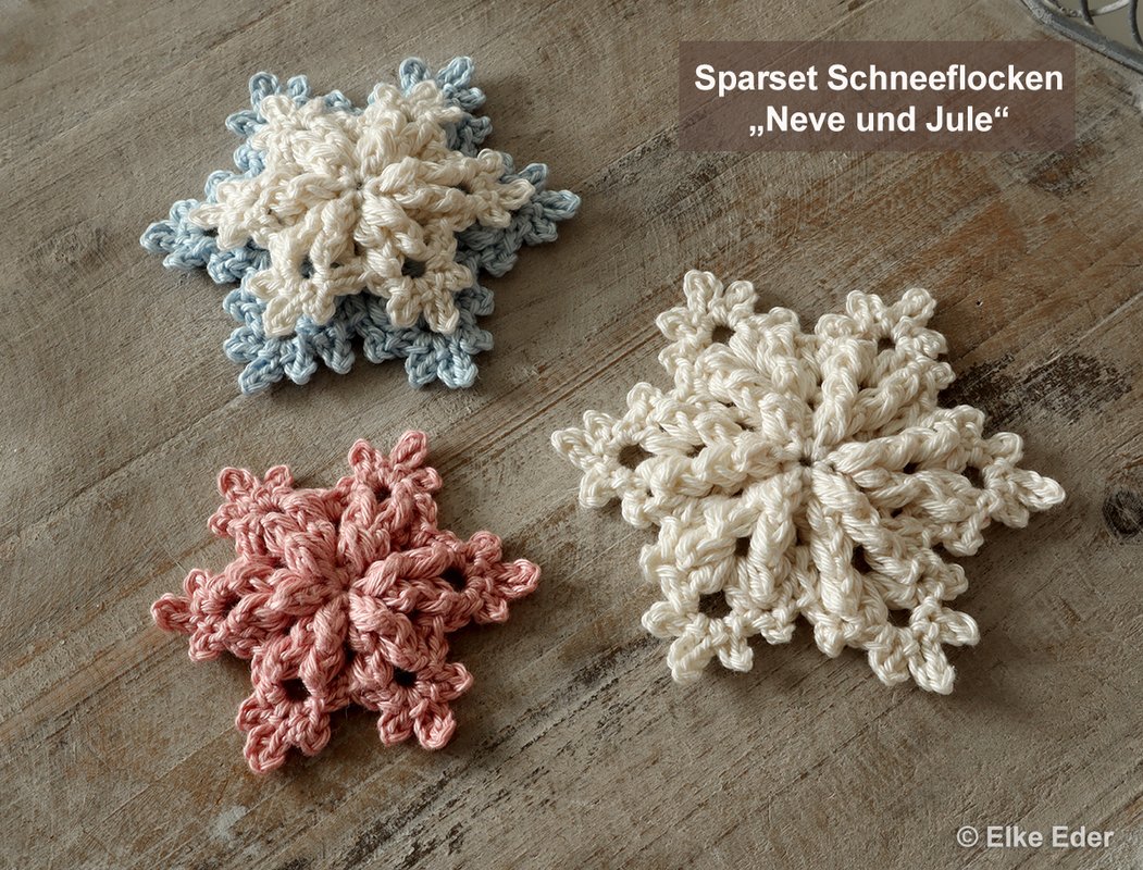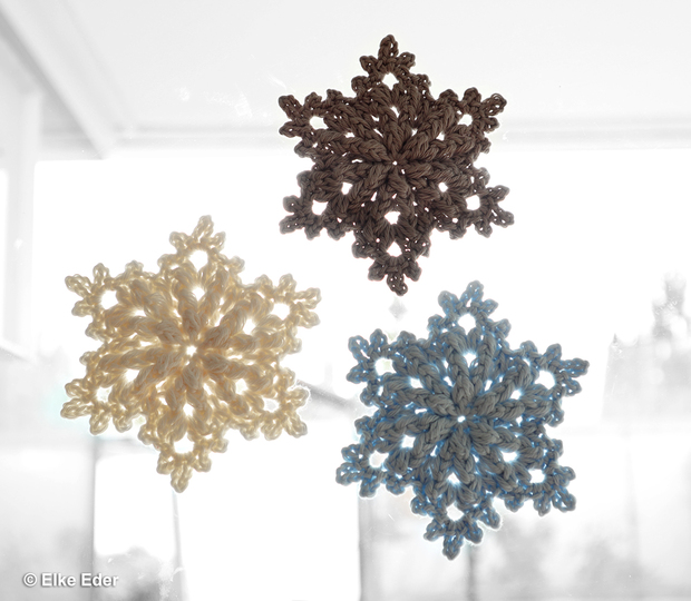 Ein schönes Reliefmuster, fünf Runden und etwas Häkelerfahrung benötigt es um im Handumdrehen diese zauberhafte und vielfältige Winterdeko entstehen zu lassen.