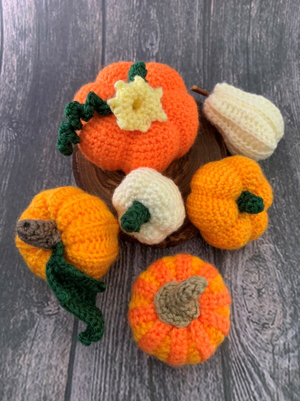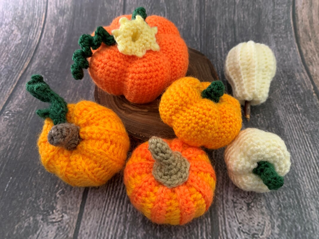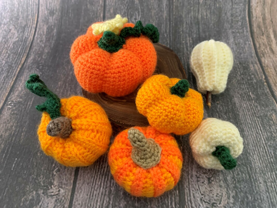 Mit dieser Anleitung kannst du dein Heim herbstlich dekorieren, indem du 6 kleine, schnell gehäkelte Kürbisse fertigen kannst. Sie können je nach Wunsch mit verschiedenen Stielen, Ranken, Blüten und Blättern verziert werden. Ideal auch um Wollreste zu verwerten!