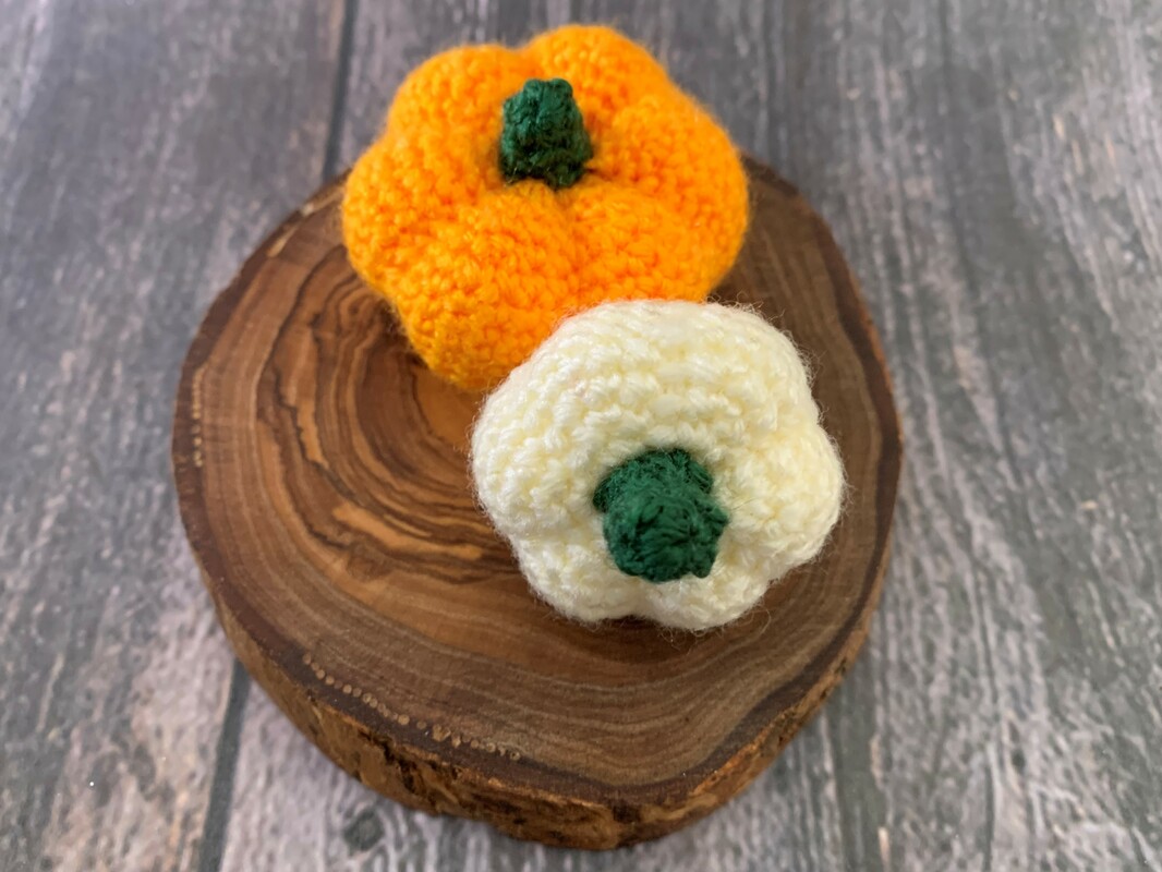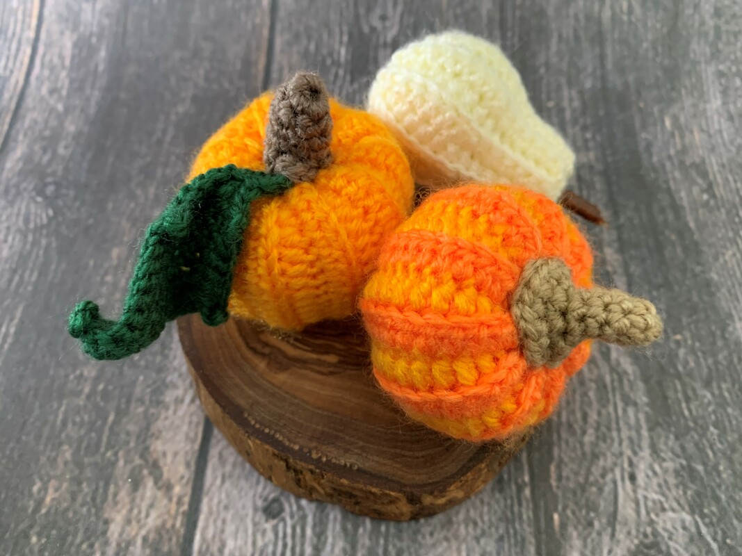 Wenn die in der Anleitung benutzte Wolle verwendet wird, haben die Kürbisse folgende Größe: