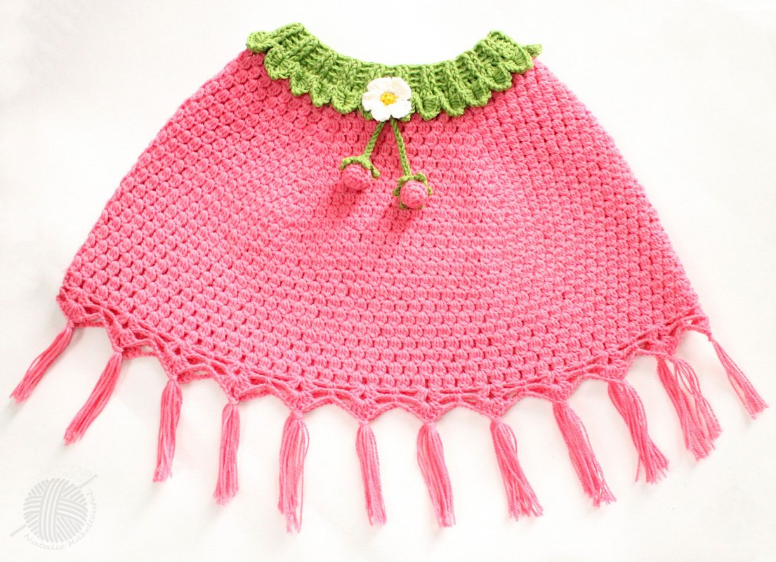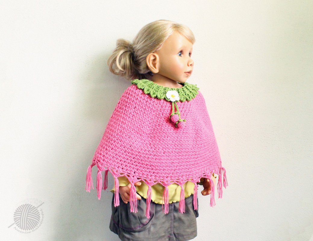 Diese PDF-Häkelanleitung besteht aus bebilderter Anleitung zum Häkeln von Baby- oder Kinderponcho "Himbeere" für Gr. 50-128 (Neugeborene bis 7-jähriges Kind).