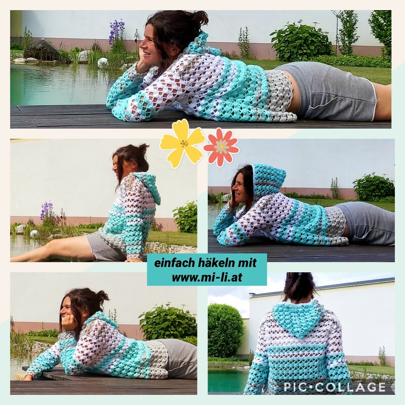 Lässige Kapuze, V-Ausschnitt, lockerer moderner Schnitt, ein tolles Muster und leuchtende Farben machen den Pulli zu einem echten Hingucker! Die Anleitung ist auch ganz einfach individuell noch größer oder kleiner anzupassen!