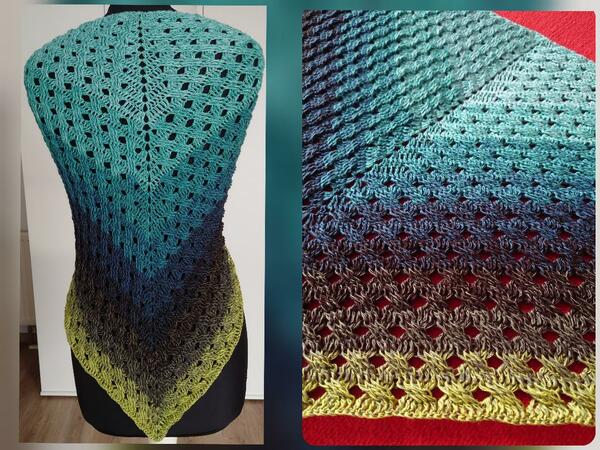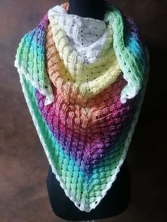 Die Anleitung zum Tuch besteht aus schriftlich ausformulierten Reihen und beinhaltet eine Häkelschrift.