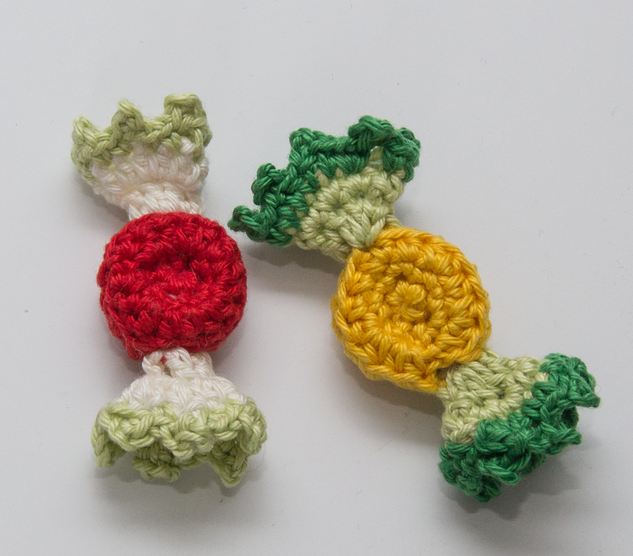 Das Lakritz-Konfekt ca. 2 cm x 2 cm groß, die Bonbons ca. 7-8 cm groß.
