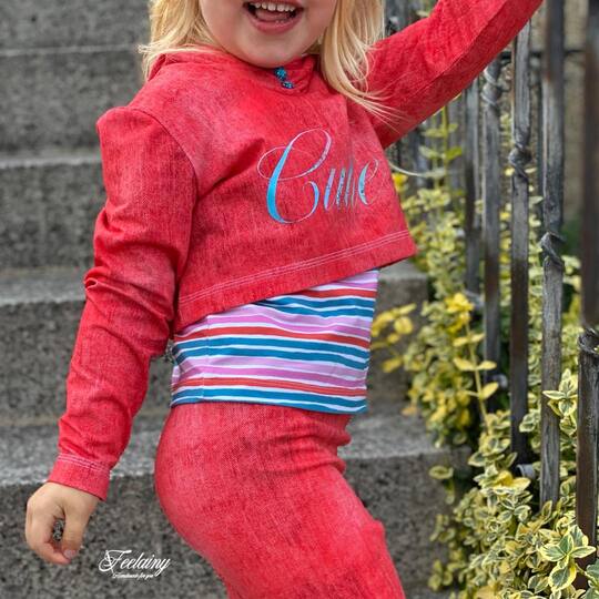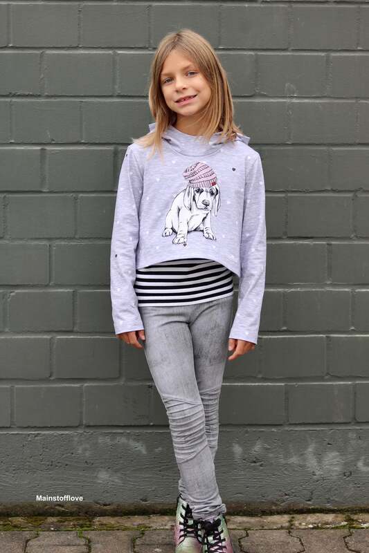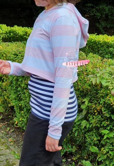 Hier hast du dich für das Cold Crop entschieden – ein kurzes Crop-Shirt mit langen Ärmeln und Kapuze – ideal für Frühling, Herbst und Winter. Mit dazugehörigem engen Top für drunter – auch dies ist natürlich im Schnittmuster enthalten.