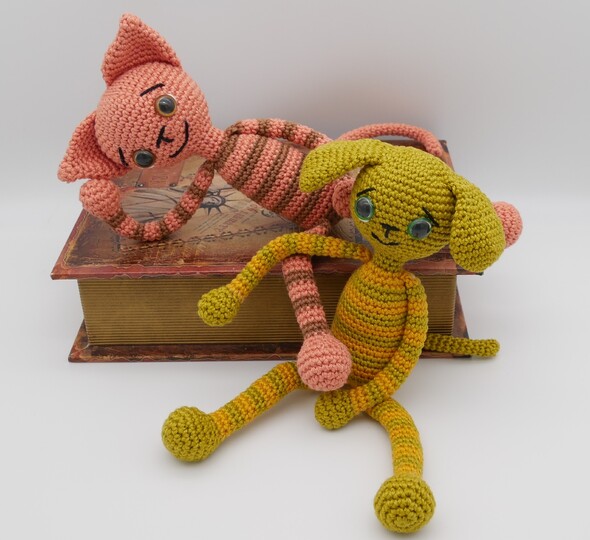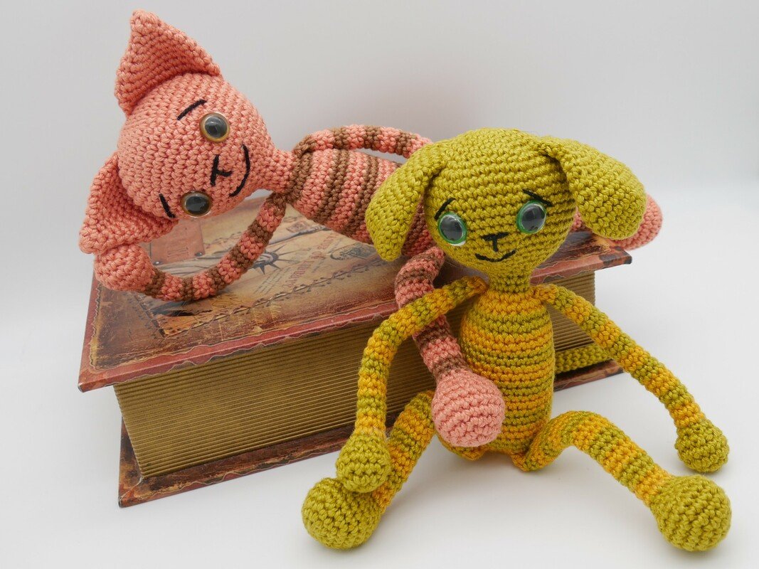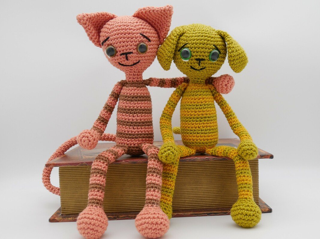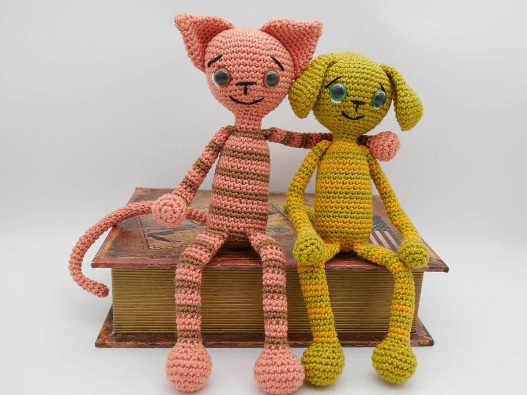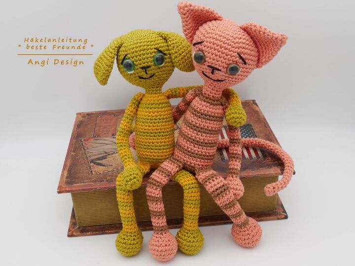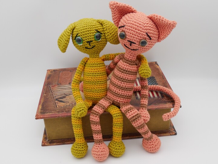 Die besten Freunde sind Hund und Katze, sie habe sich zum knuddeln gern. Alle Teile sind dank Füllung beweglich und formbar ganz nach Lust und Laune. Beide Tiere können nach dieser Anleitung nach gehäkelt werden.