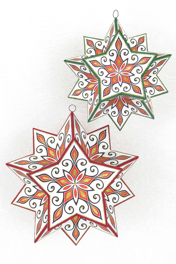 Der kleine Stern ist ca. 16 cm, der große Stern ist ca. 21 cm hoch.