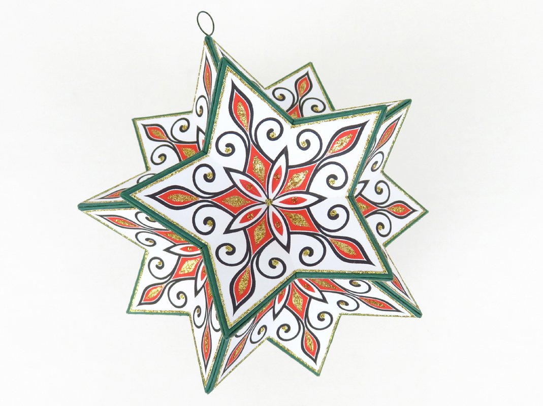 Um diese Sterne nachzuarbeiten, sollst du gut mit Schere und Cutter umgehen können und wissen, wie man Faltlinien einprägt und Grundformen faltet. Auch sollst du bereits mit Fotokarton, Klebstoff und im Optimalfall auch mit Glitter-Liner gearbeitet haben. Unter diesen Voraussetzungen wirst du diese weihnachtliche Deko ohne große Mühe basteln können.