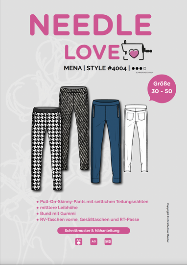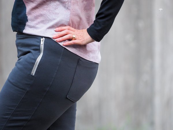 MENA – Pull-On Skinnypants bzw. Leggings ist der perfekte Partner für Oversized Sweater, Pullis oder Blazer. Du kannst Deine MENA wahlweise mit RV-Taschen, Gesäßtaschen oder RT-Passe nähen.