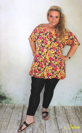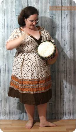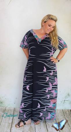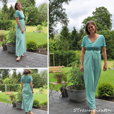 So ganz Hippie-Style-mäßig kann das Kleid in bodenlanger Version genäht werden oder in Tunika-/Knielänge.