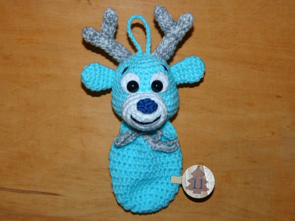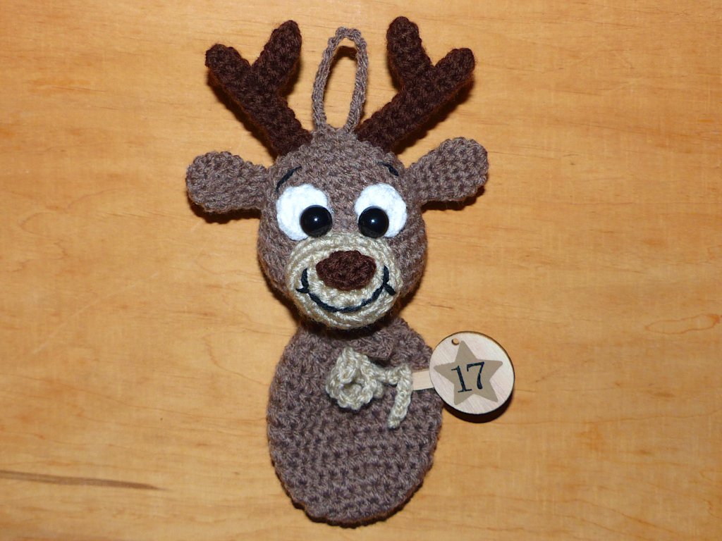 Je nach Garn- und Häkelnadelstärke variiert die Größe von den Rentieren.