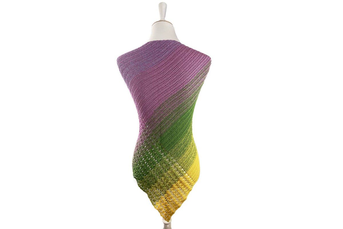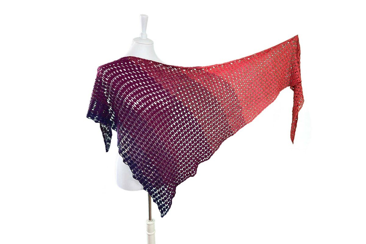 Das asymmetrische Tuch hat den Vorteil, dass ganz alleine du bestimmen kannst, wie es aussehen soll... Komplett in einem Muster oder das Muster mit Stäbchen kombiniert.