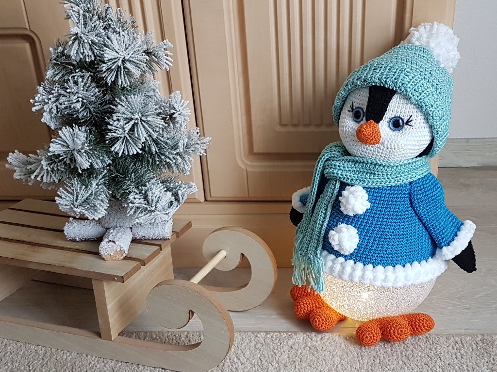 Ob als Geschenk oder für dich selbst - die Winterlampe Pinguin Pino ist ein absoluter Blickfang! Mit viel Liebe zum Detail handgehäkelt und individuell gestaltet, verleiht sie jedem Raum eine einzigartige Note.