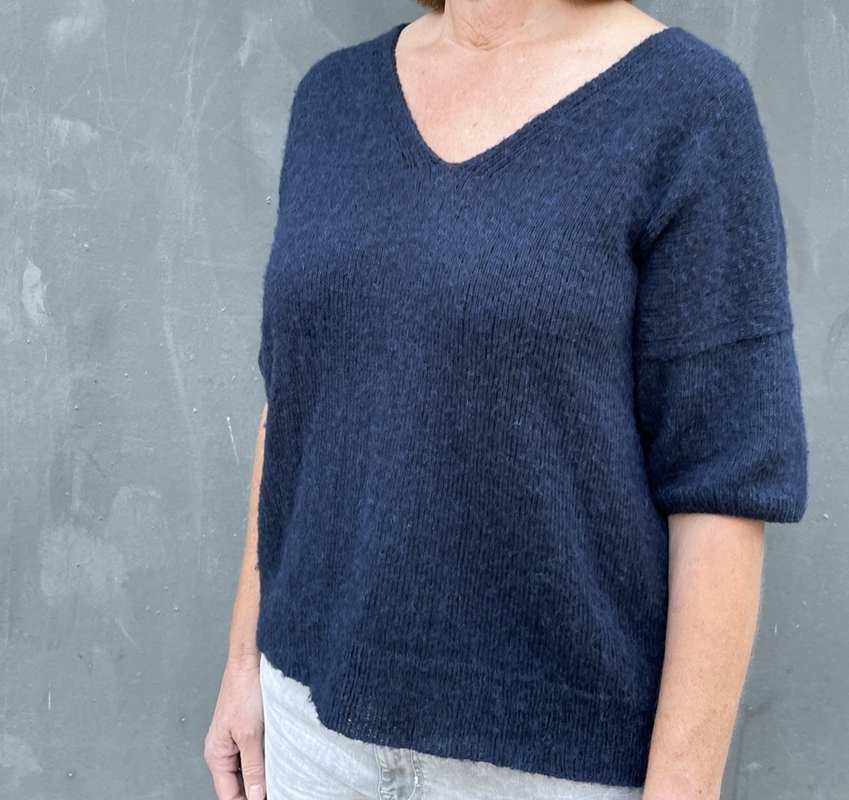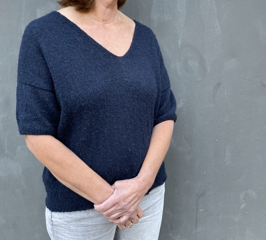 Es ist ein einfacher Oversize Pullover mit einem schönen V-Ausschnitt.