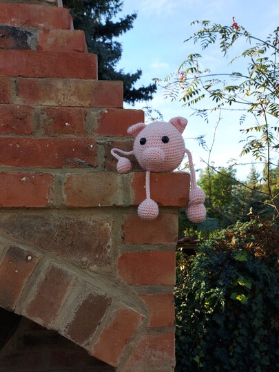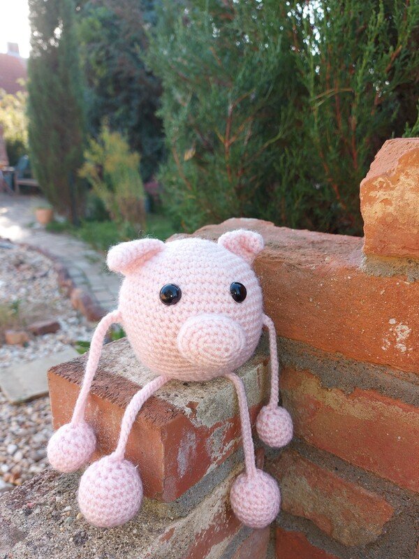 Nach ein paar mißglückten Versuchen häkelte ich ihn nach. Ich wollte es ganz schlicht und einfach haben und es gelang mir ganz gut. Nun sprudeln die Ideen nur so aus mir heraus... Schweinchen Grunz wurde geboren :)
