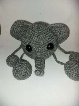 Nach ein paar mißglückten Versuchen häkelte ich ihn nach. Ich wollte es ganz schlicht und einfach haben und es gelang mir ganz gut. Nun sprudeln die Ideen nur so aus mir heraus... Schweinchen Grunz wurde geboren und kurz darauf kam Elefant Ela :)