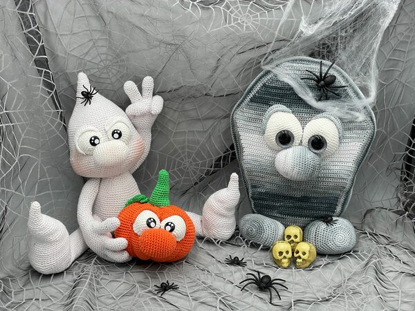 Die deutsche Originalausgabe dieser Anleitung erschien erstmals am 25.09.2021 unter dem Titel: „Gustav Geist und Konrad Kürbis“ und am 28.09.2021 unter dem Titel: „Gandalf Grabstein“ mit Bonusanleitungen "Fritz Fledermaus und Sissi Spinne". Das Urheberrecht liegt bei Yazzie ́s Häkelstübchen - Jessica Behrendt. Dies betrifft sowohl den Text, als auch die Fotos, Illustrationen und Zeichnungen. Verkauf, Vervielfältigung, Tausch und Veröffentlichung (inkl. Übersetzungen) der Anleitung (einschließlich Veröffentlichung im Internet) sind untersagt und stellen eine Urheberrechtsverletzung dar.