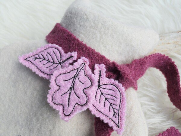 Die Blätter werden kompett im Stickrahmen gestickt, eine Rückseite wird mit angenäht, so verschwindet die Rückseite im Innern der Stickere.