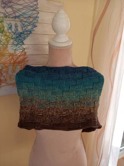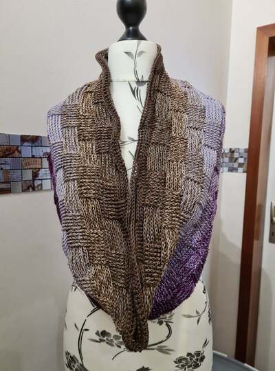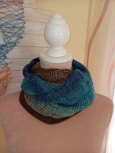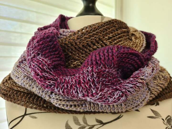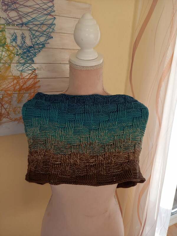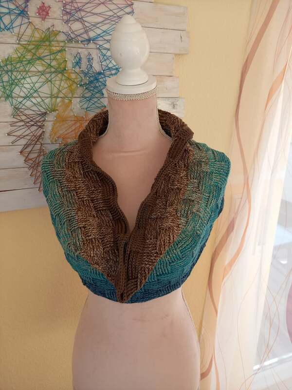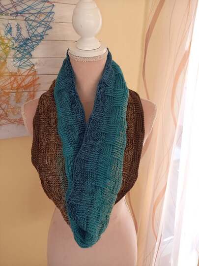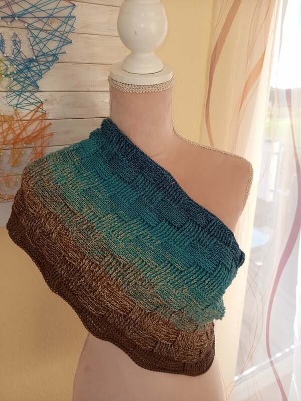 Bei Nutzung von einem 800m 4-fädigen Bobbel wird es eine schöne Größe und der Loop passt doppelt um den Hals. Wer es gerne größer mag, kann die Musterreihen beliebig oft wiederholen.