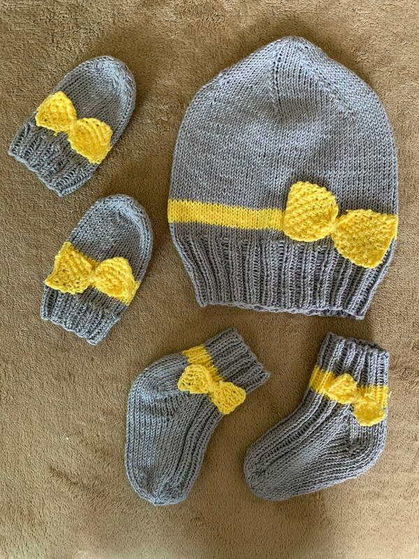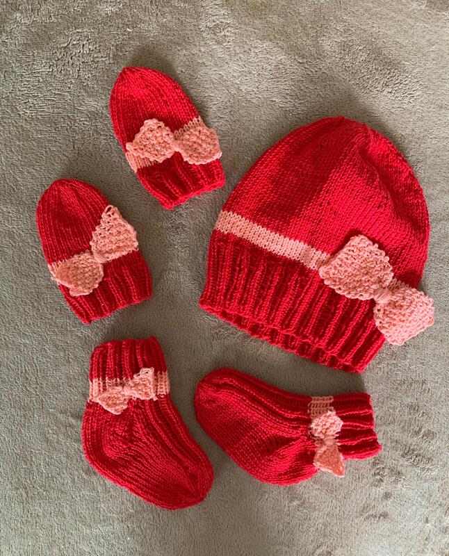 das Baby Set zum nachstricken von Mütze Fäustlinge Söckli