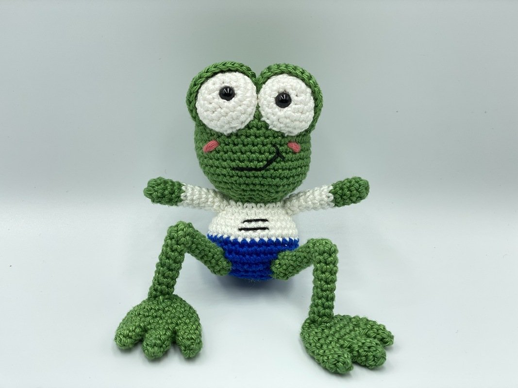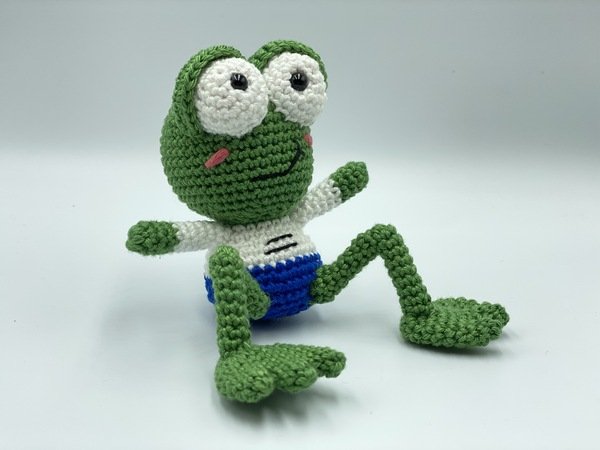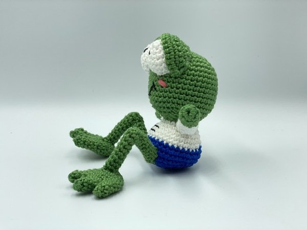 Mit dieser Häkelanleitung kannst du sehr einfach diesen süßen Frosch nachhäkeln.
