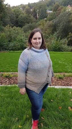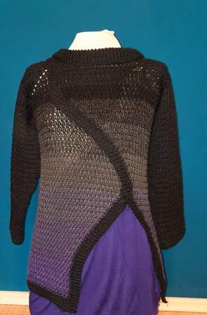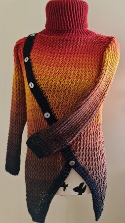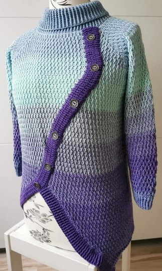 Der Rollkragen Jackover kann durch die RVO Technik in jeder erwachsenen Größe gehäkelt werden.
