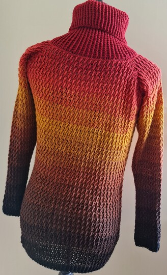 Lediglich die Ärmel und der Rollkragen werden zum Schluss angehäkelt.