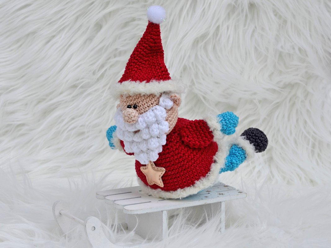 Häkelanleitung "Schlitten fahren: fliegender kleiner Nikolaus