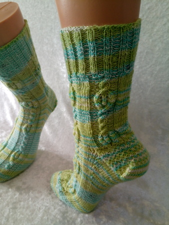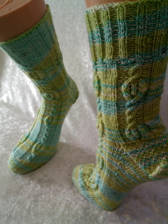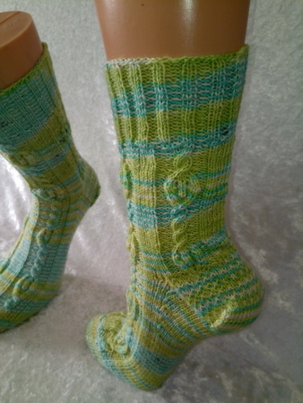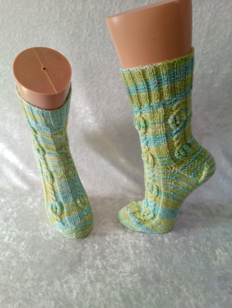Genau richtig für die ganze Familie oder als stylisches Accessoires an ihren Füßen. Die Socken können an verschiedene Schuhgröße angepasst werden, da Charts als auch schriftliche Instruktonen für 56 bis 72 Maschen zur Verfügung stehen. Dieses Muster kann von geübten Strickerinnen sehr gut bewältigt werden. Für Anfänger stellen diese Strümpfe eine Herausforderung dar.
