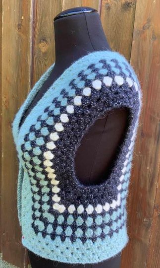 Bolero/Weste "Grannyfun" hat einen Breite von 98 cm und ist 48 cm lang