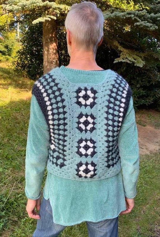 Boleroweste "Grannyfun"...ist eine flotte , warme Bolero-Weste mit dem geliebten Grannymuster..diese Bolero-Weste hat ein prima Passform und kann kann sie lässig über dünnere Pullover tragen ...eine prima Anleitung ..auch für Männer!