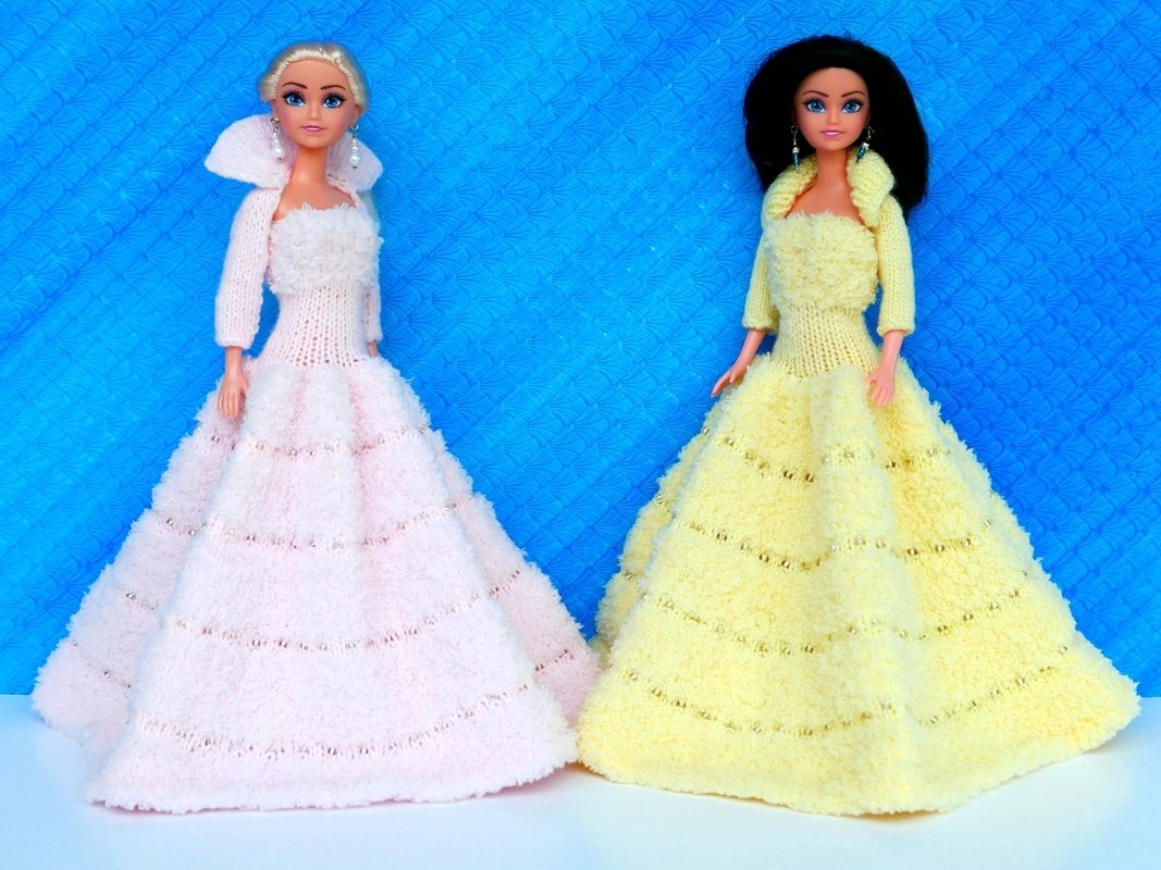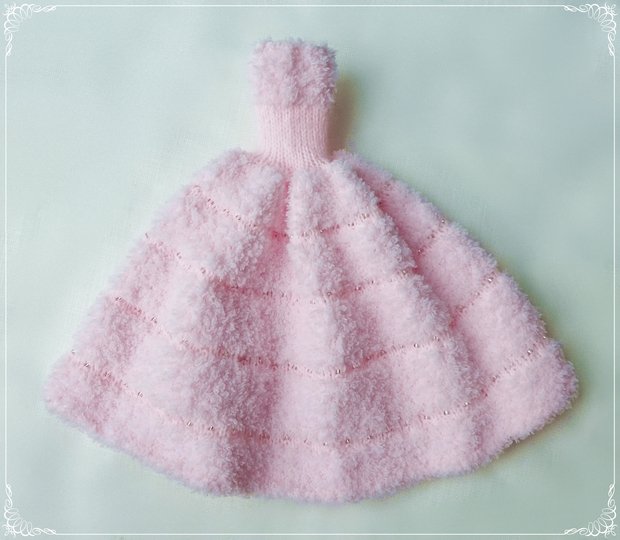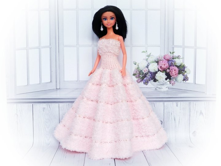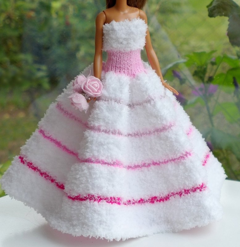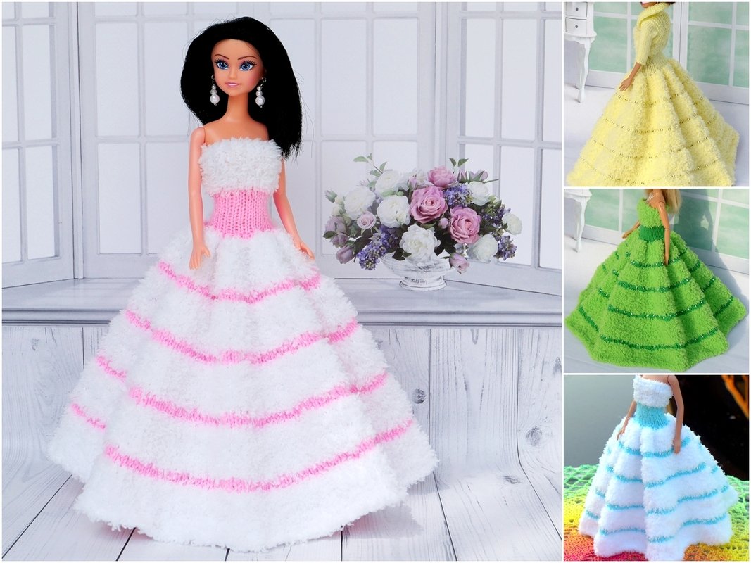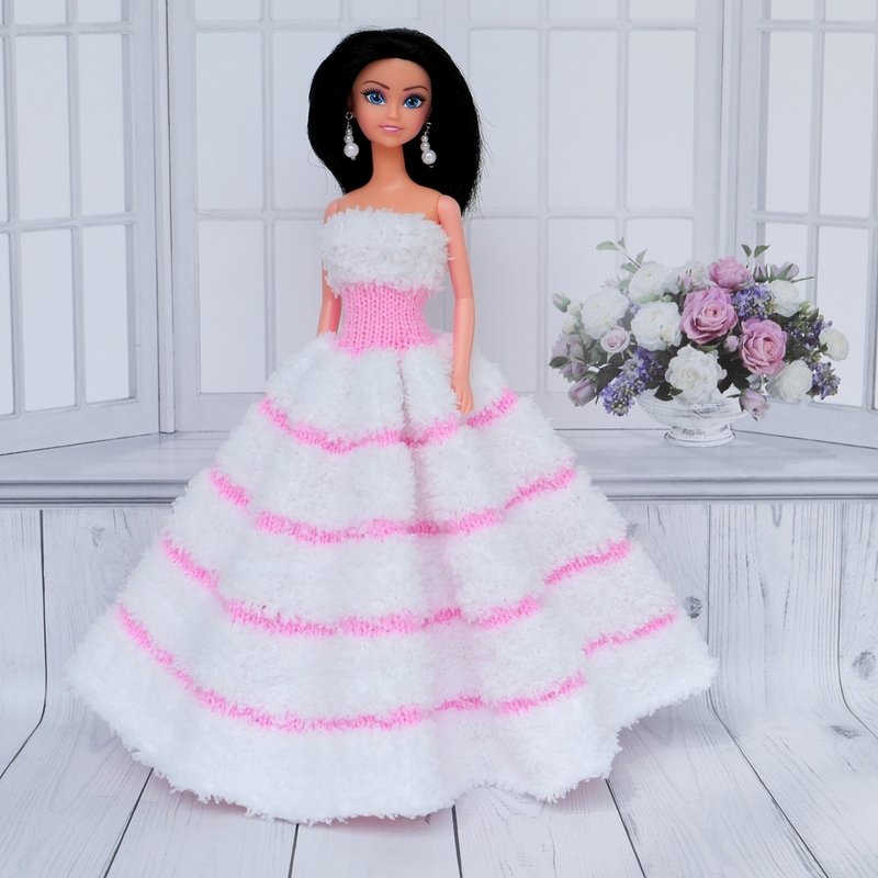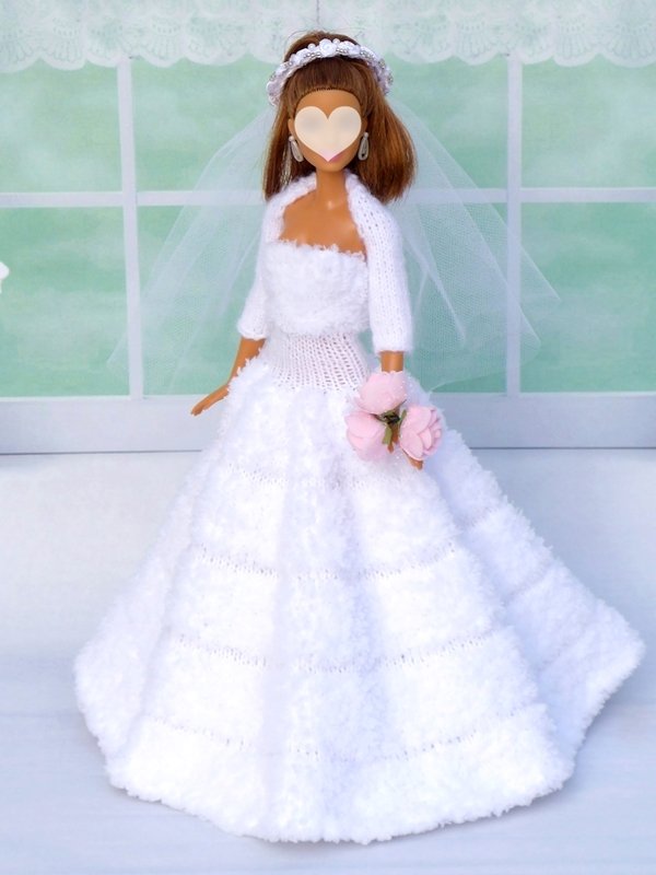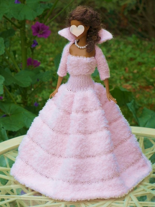 Das Kleid und die Ärmelschals passen allen kleinen Anziehpuppen dieser Art, die ca. 29 bis 30 cm groß sind.