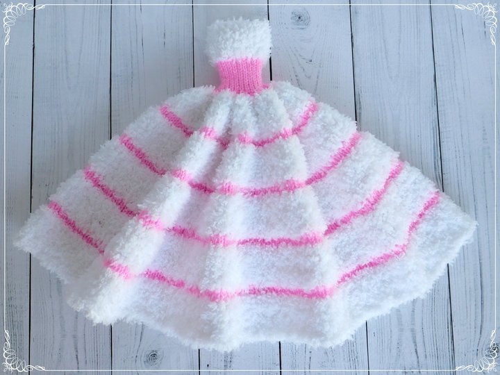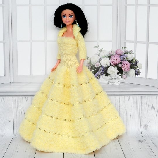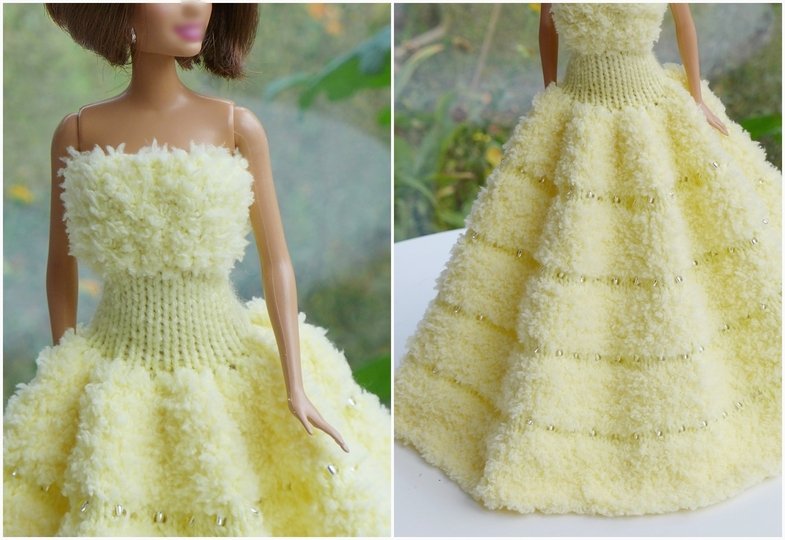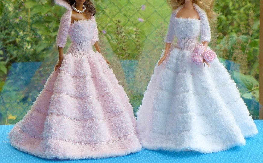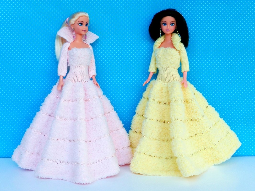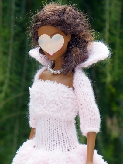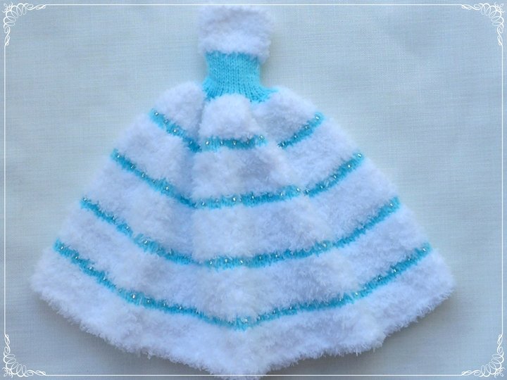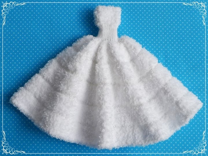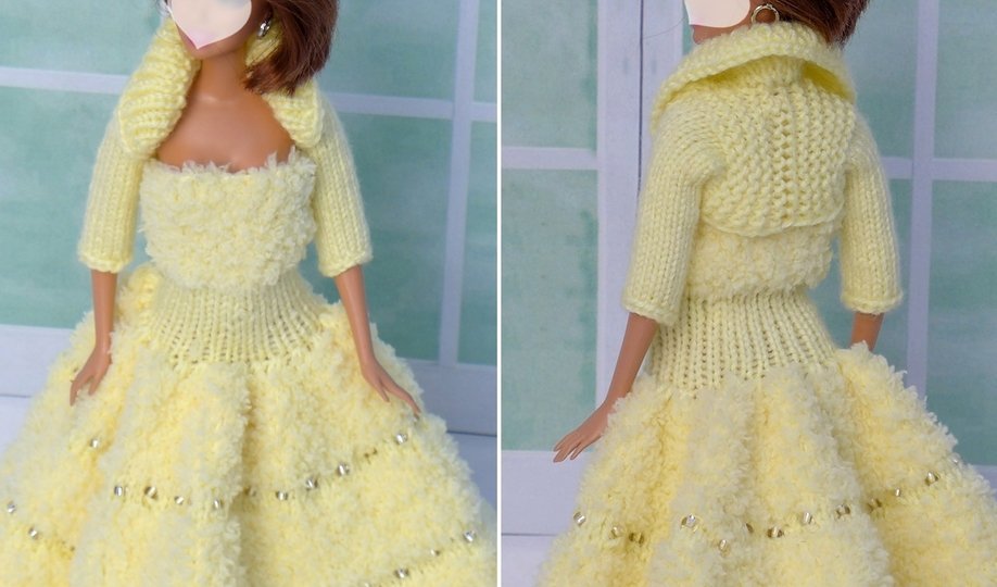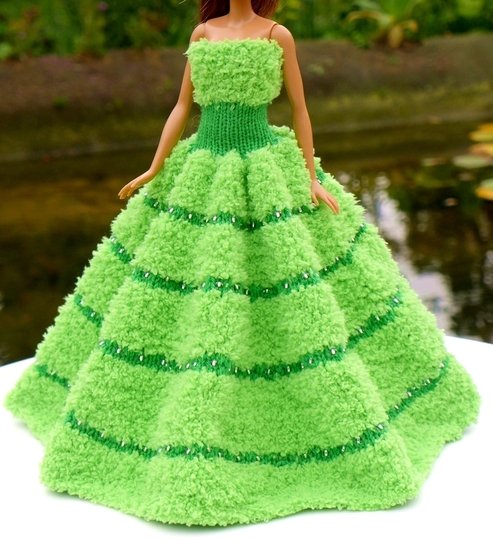 Das Kleid und die Ärmelschals passen allen kleinen Anziehpuppen dieser Art, die ca. 29 bis 30 cm groß sind.