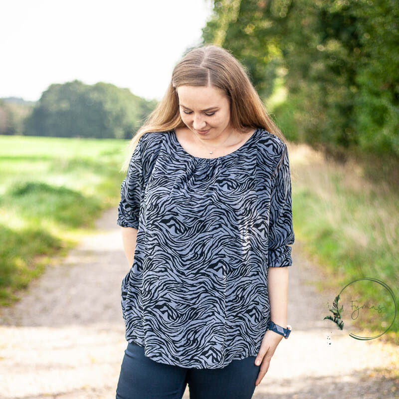Ausgelegt ist der Schnitt auf Webware Viskose oder Blusenstoffe. Aber auch Viskosejersey ist möglich.