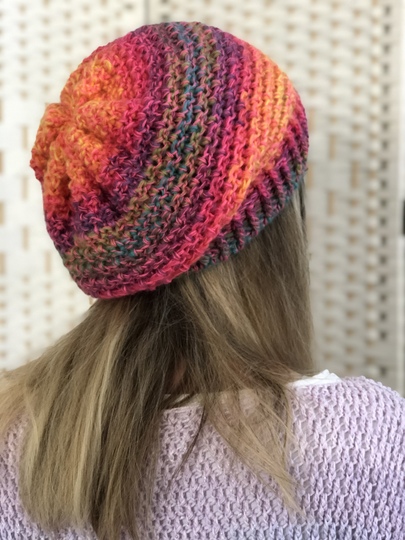 Je nach Garnauswahl, kann man die Beanie auch im Sommer als modisches Accessoire tragen. Besonders gut eignen sich hier Farbverlaufsgarne, weil alles mit einem Rutsch von der Häkelnadel hüpft. Die Beanie-Mütze und die Handschuhe sind passend für unseren 1-Bobbel-Wendepulli unisex.