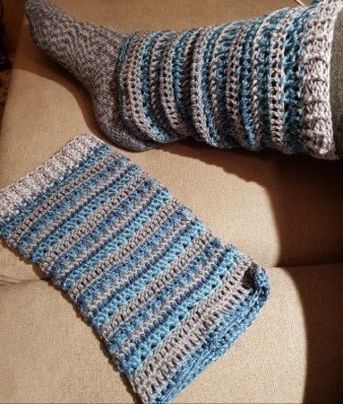 Ihr erwerbt hier das Set Pippilotta bestehend aus der Anleitung für Arm und Beinstulpen in einem schriftlichen Text sowie in Häkelschrift.