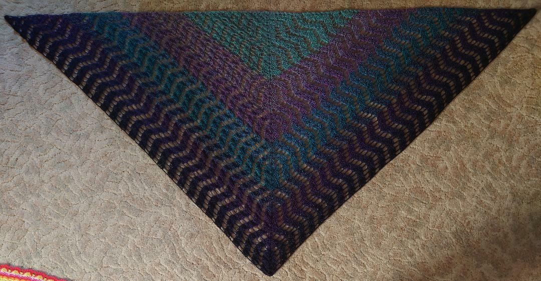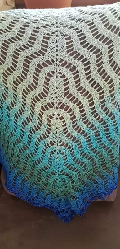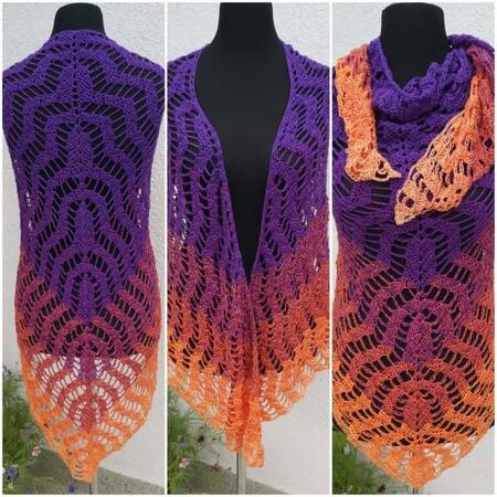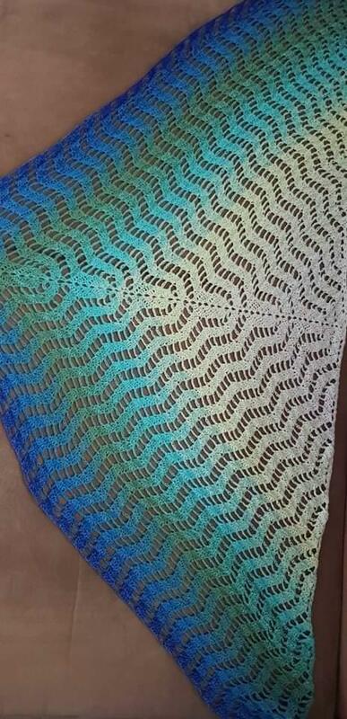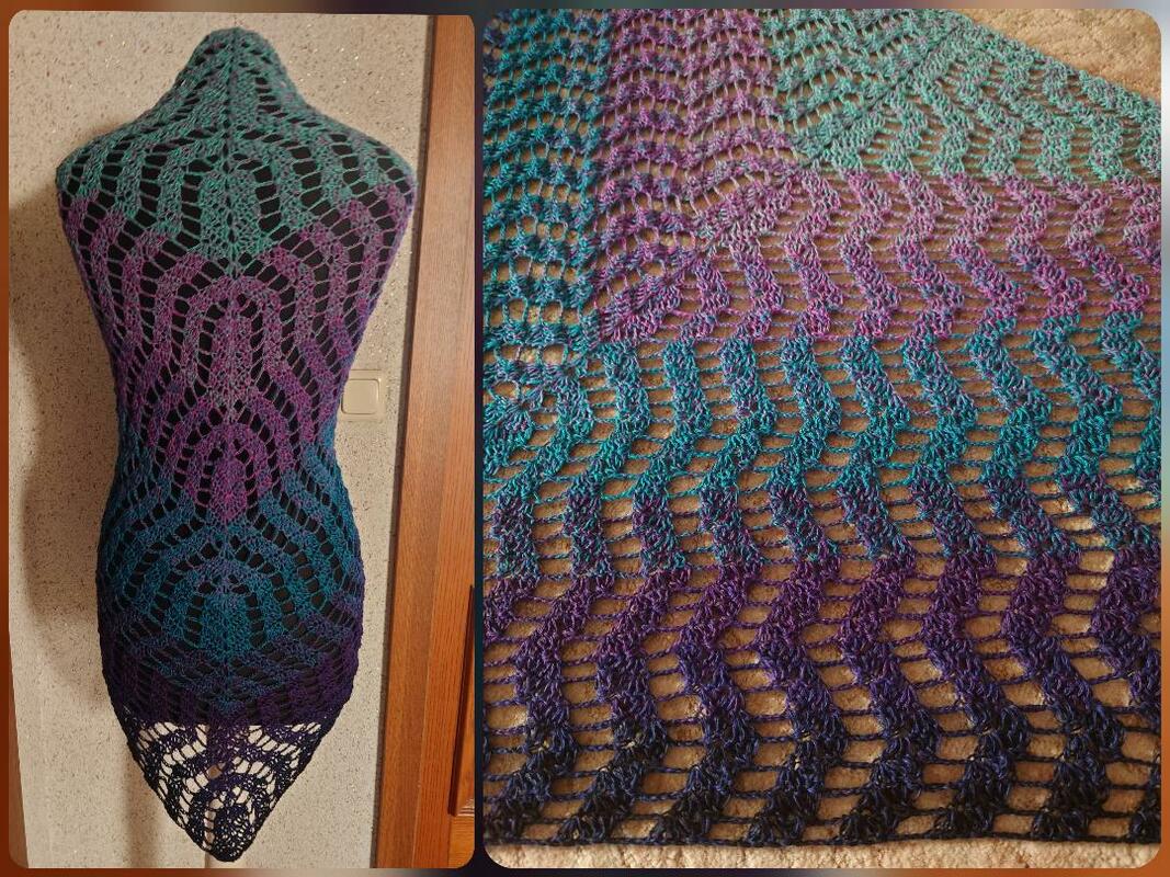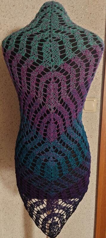 Die Anleitung zum Tuch besteht aus schriftlich ausformulierten Reihen und beinhaltet eine Häkelschrift.
