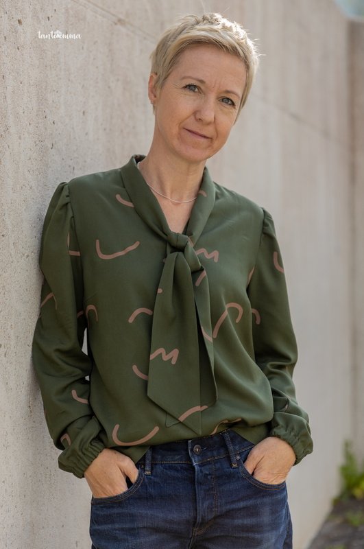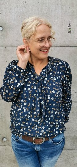 Mit der Schluppenbluse Rosalie liegst du voll im Trend. Genäht aus luftigen Stoffen passt Rosalie perfekt zur Jeans, kann aber auch dein Business-Outfit stilvoll abrunden. Alternativ zur Schluppe hast du die Möglichkeit, einen kleinen Stehkragen zu nähen. Geeignete Stoffe sind Viskose Webware, Viskose Twill oder andere schön fließende Webware.