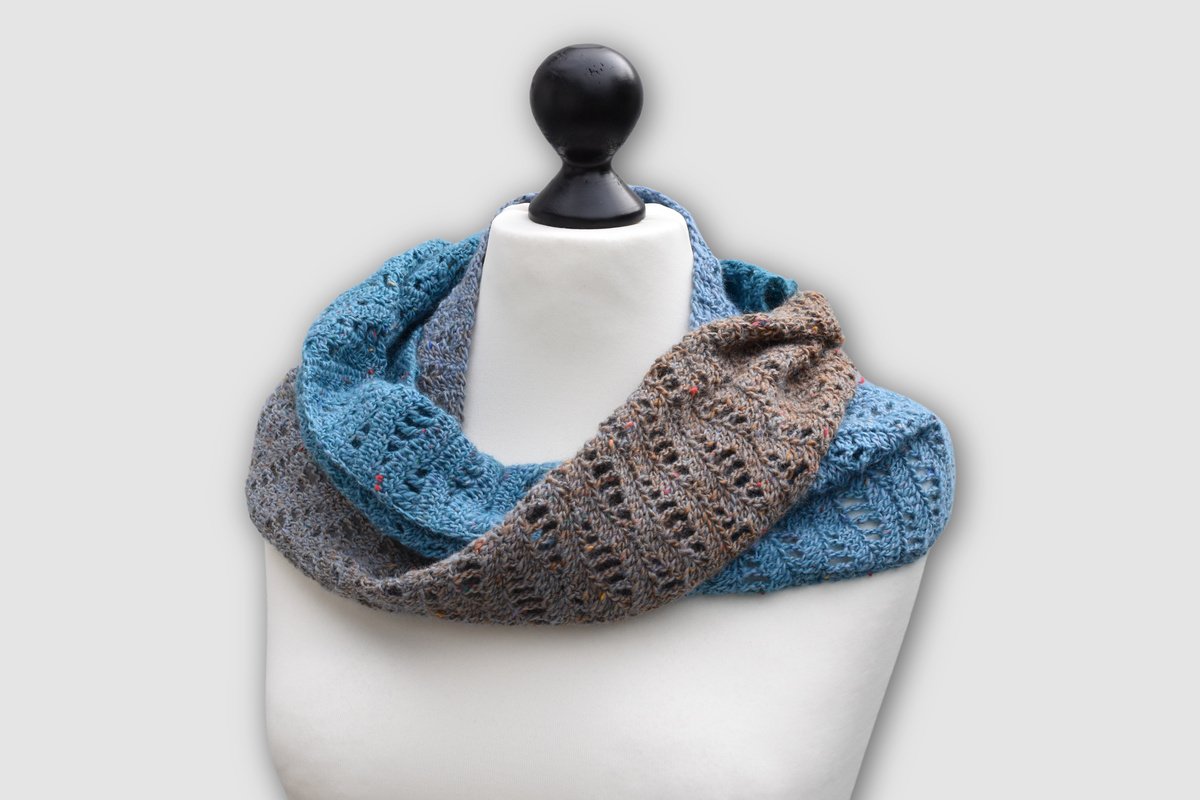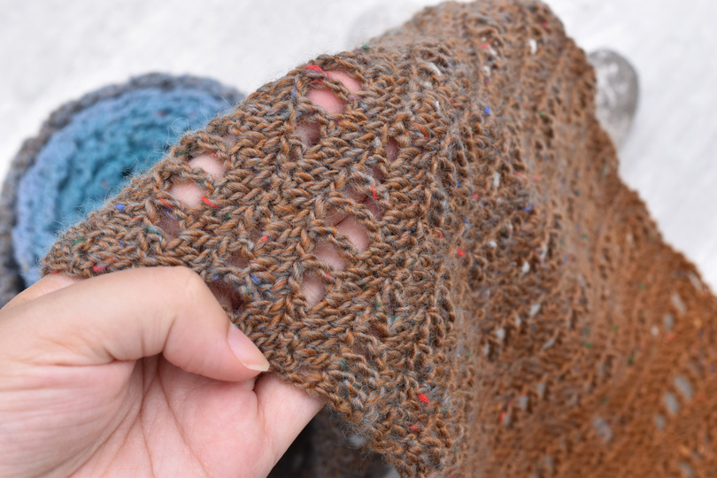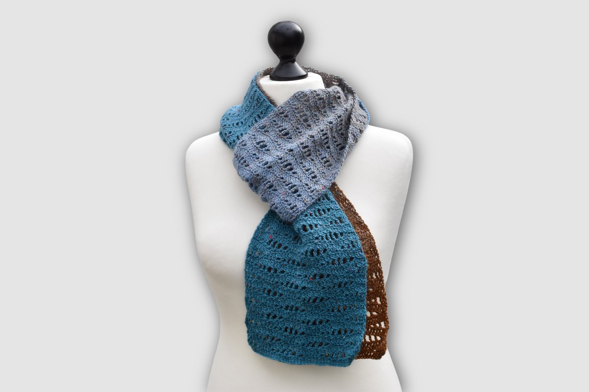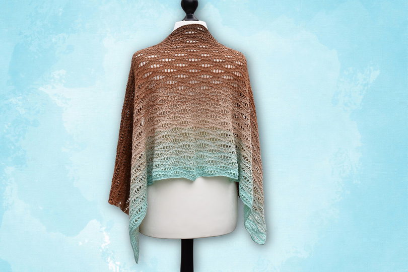 Das Muster des Schals/der Stola Boston erinnert an sanfte Wellen am Strand und der Küste Neuenglands. Das Design ist sowohl luftig als auch dicht, sodass es sich perfekt für den Übergang im Herbst eignet.