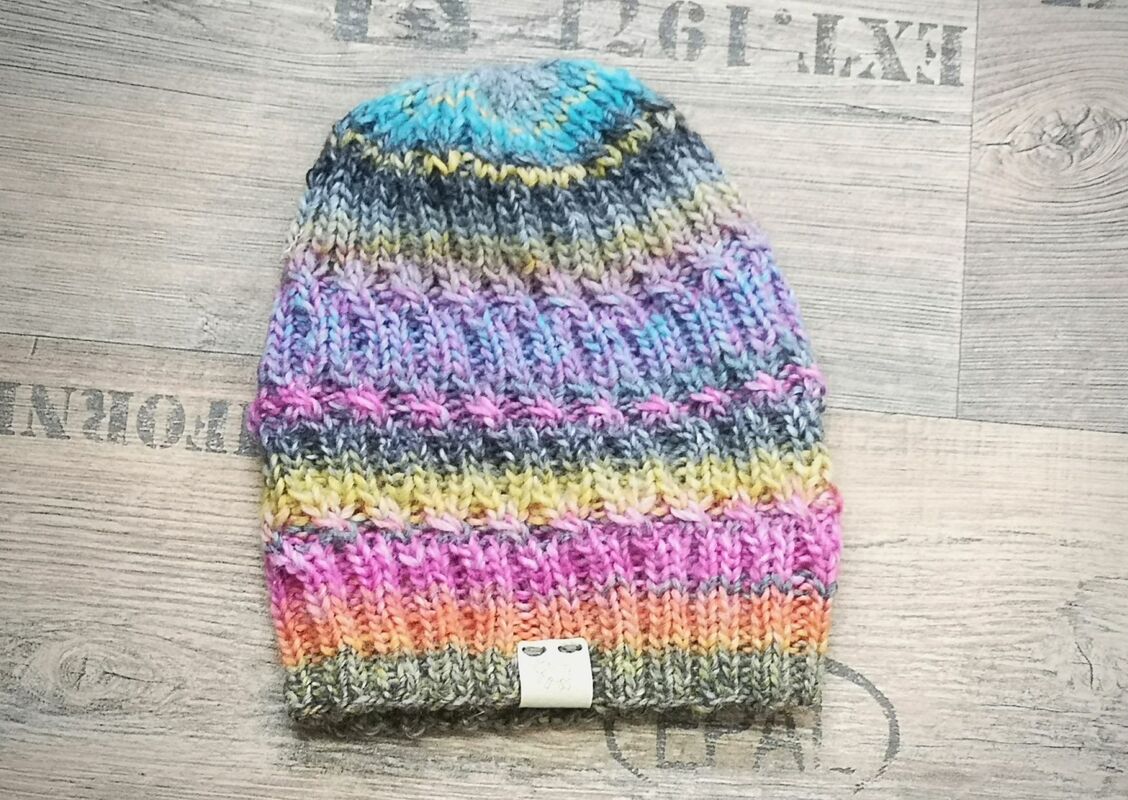 Das einfach zu strickende Muster, das seine Wirkung nur durch verkreuzte Maschen erhält, gibt der Mütze das gewisse Extra und mehrfarbige Wolle kommt super zur Geltung. Dabei ist die Mütze einfach und schnell zu stricken, ein richtiges Sonntagsprojekt,auch für Anfänger. Schon nach ein paar Stunden stricken kann man die fertige Mütze tragen.