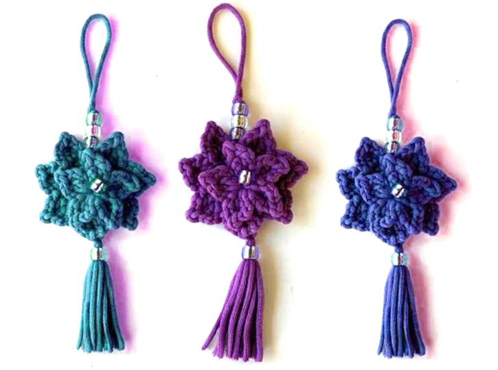 Den netten Doppelstern kannst Du prima als: Schlüsselanhänger, als Quaste, für eine Tuchspitze oder als Christbaumanhänger benutzen