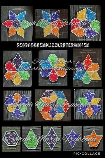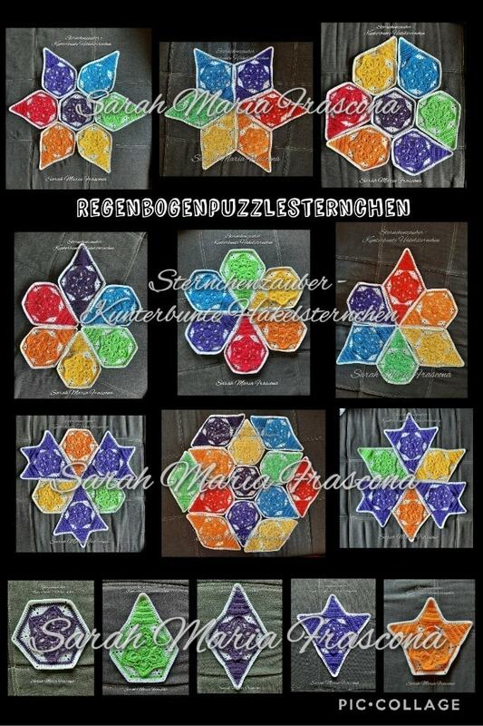 In dieser Anleitung werden verschiedene Grannys gehäkelt und diese dann hinterher wie ein Puzzle zusammen gelegt oder eben gehäkelt. Man kann aus den Teilen auch wunderbar ein Kissen häkeln.