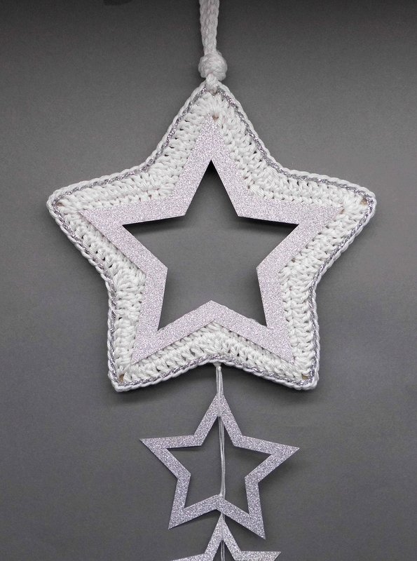 Die PDF-Datei umfasst zusätzlich zur schriftlichen Häkelerklärung auch die Häkelschrift für den Stern, Schneide-Schablonen für Sterne in verschiedenen Größen und sehr viele detaillierte Fotos, damit Du diese schönen und vielseitigen Deko-Hänger in den hier gezeigten Deko-Varianten ganz einfach, Schritt für Schritt, erfolgreich nachmachen kannst.