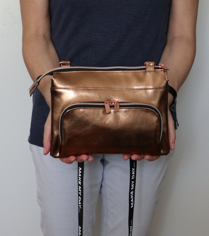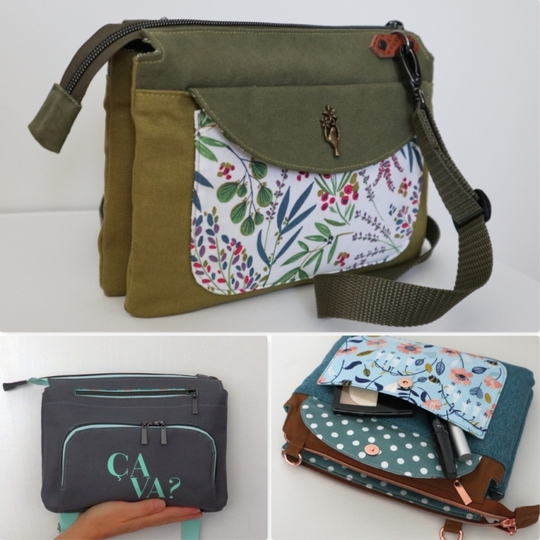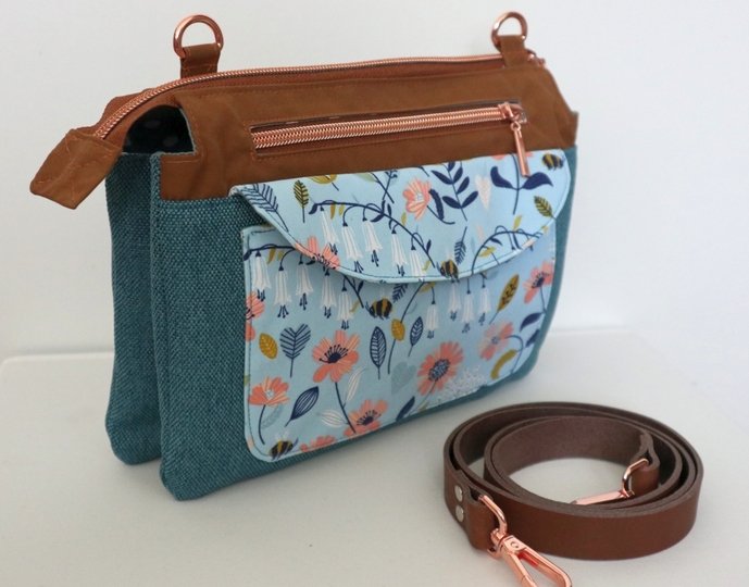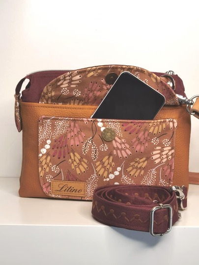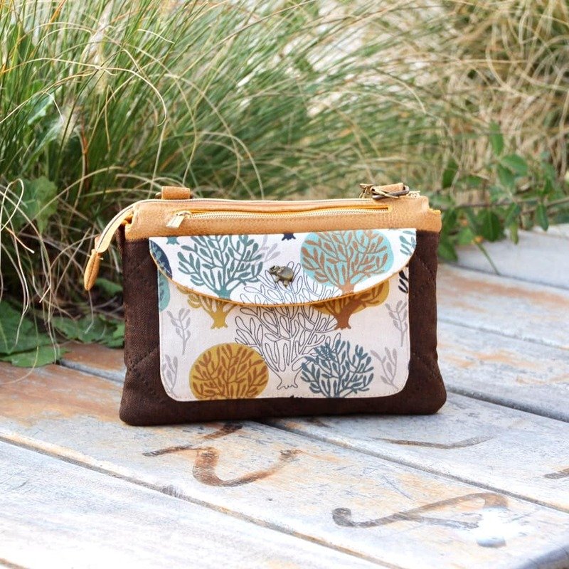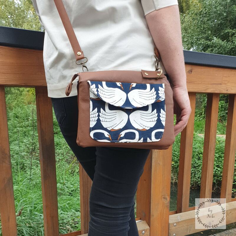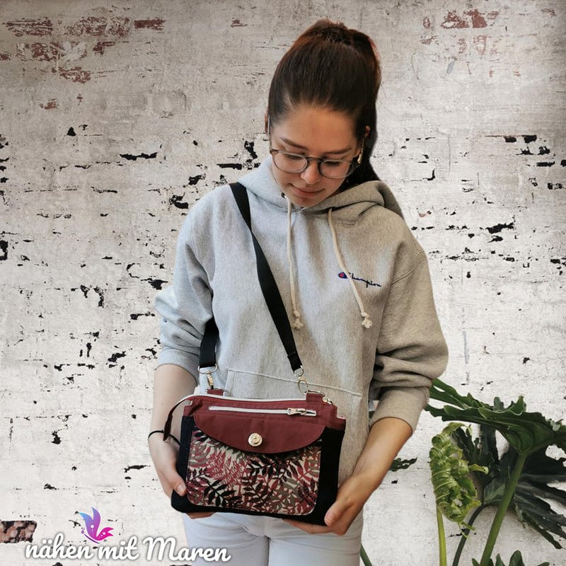 Die Twin Bag ist ein kleines Umhänge Täschchen in der Größe 25 cm B x 18 cm H, das im Grunde zwei Taschen in einer vereint. Durch die beiden Taschenkörper, die fest miteinander verbunden sind, entsteht die außergewöhnliche Doppeloptik. Innen erhältst du durch diese Verarbeitung zwei separate Fächer, sowie ein zusätzliches Mittelfach. Außerdem kannst du wie immer aus mehreren zusätzlichen Innenfachvarianten deine Lieblingskombi wählen. So findet trotz kleiner Größe allerhand in der Tasche Platz. Das Schnittmuster ermöglicht dir außerdem eine Vielzahl kreativer Kombinationsmöglichkeiten. Du kannst die Twin Bag mit einfachem Außenfach und Verschlussklappe oder Reißverschlussaußenfach nähen, die Träger variieren und sie in vielen unterschiedlichen Stoffkombis gestalten. Natürlich kannst du die Tasche auch ohne die Doppeloptik als normale Umhängetasche nähen, indem du das Mittelteil einfach weglässt. Auch diese Variante zeig ich dir im EBook.