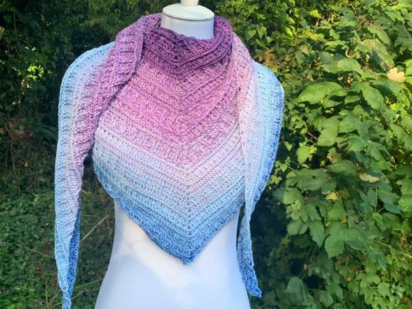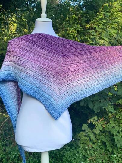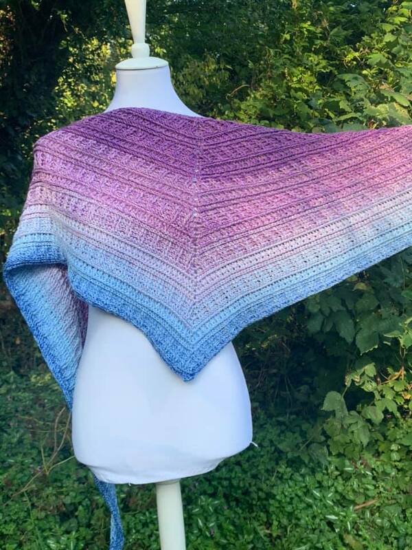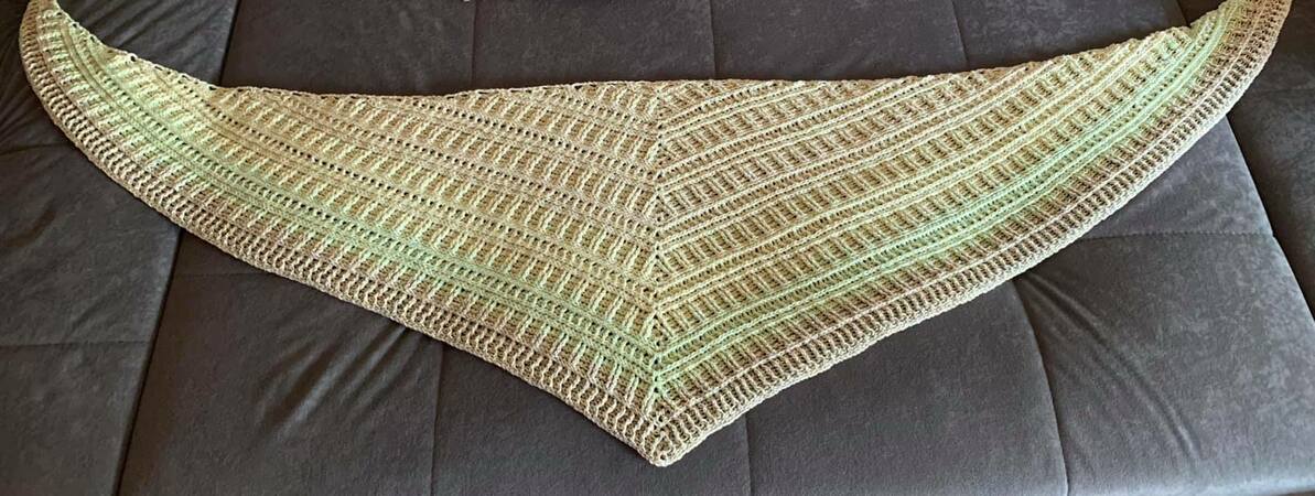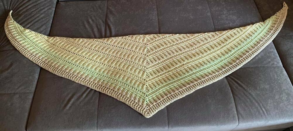 Das Tuch ist beliebig erweiterbar. Mein Tuch hat bei einem Verbrauch von 1000/4 mit NS 4.5 eine Größe von 212x46cm erreicht.
