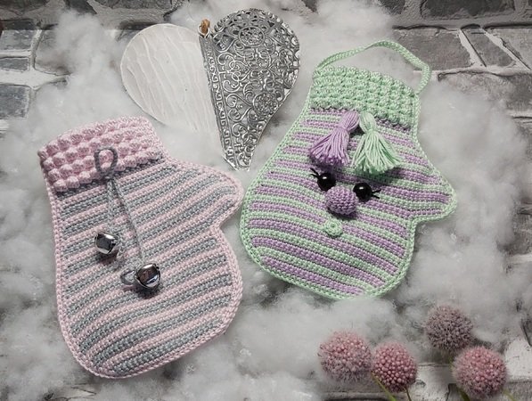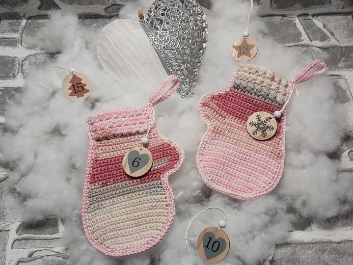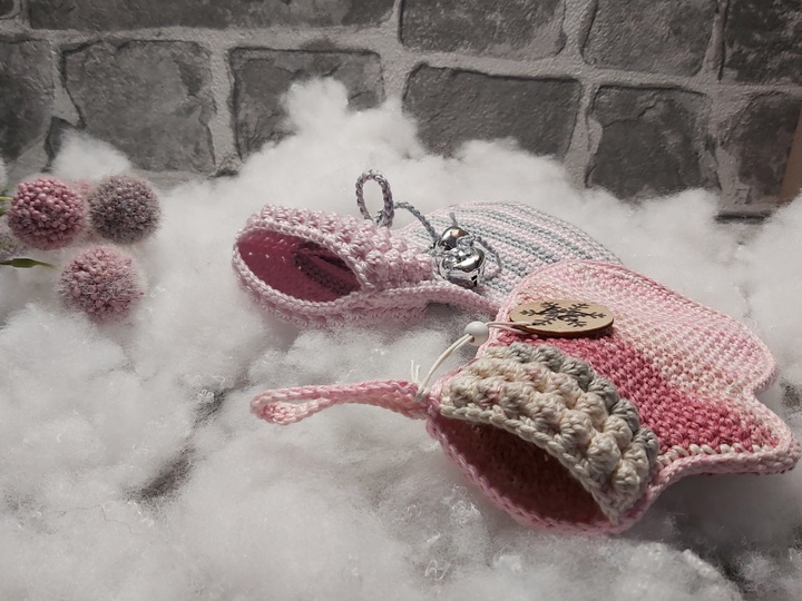 Die Geschenksäckchen "Handschühchen" und "Booties" sind in der Größe und Optik aufeinander abgestimmt, daher können sie sehr gut für einen Adventskalender kombiniert werden!!!