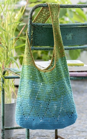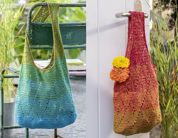 Zwei unterschiedlich große Beutel aus einem Farbverlaufsbobbel häkeln.