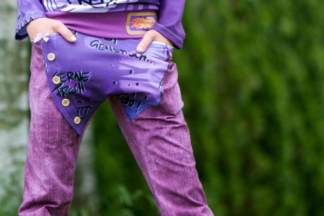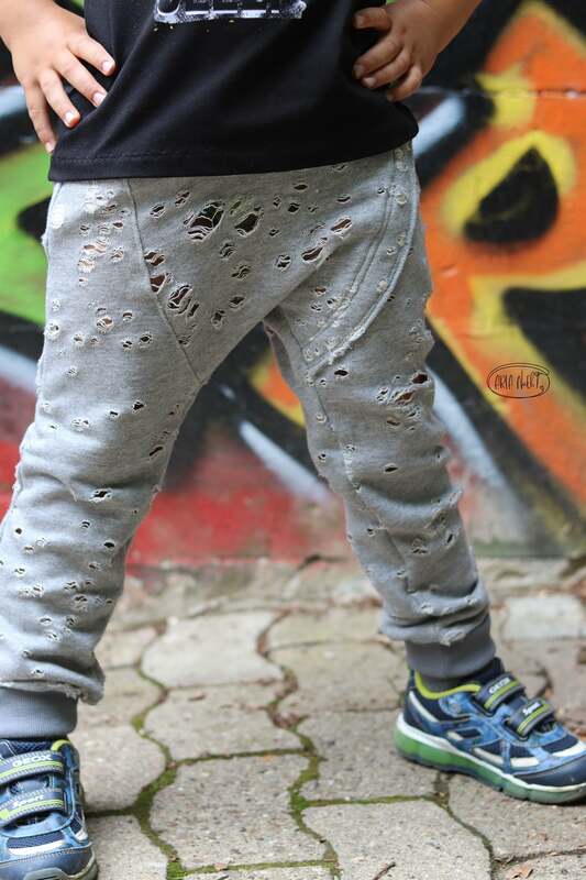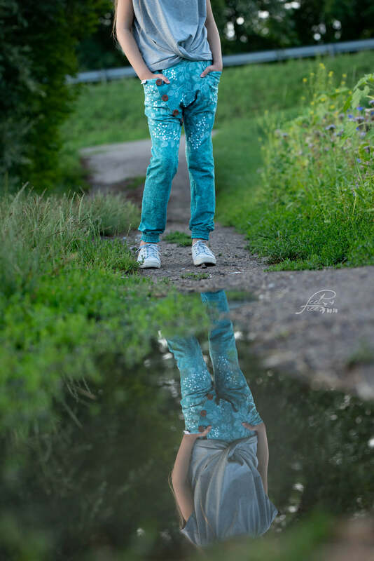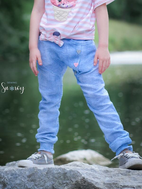 Brooklyn Kids ist wie ihre große Schwester eine Baggy-Pants der besonderen Art, denn Du kannst sie sowohl aus Webware (Jeansstoffe, Leinen, Baumwollwebware) als auch aus dehnbaren Stoffen wie French Terry, Sommersweat und auch Jersey nähen.