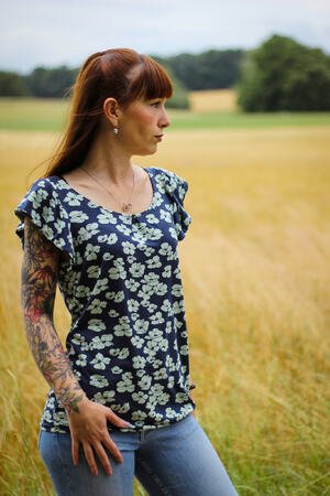 Amelie ist ein luftig leichtes Basic-Shirt mit Flügelärmelchen und Kellerfalte vorne.