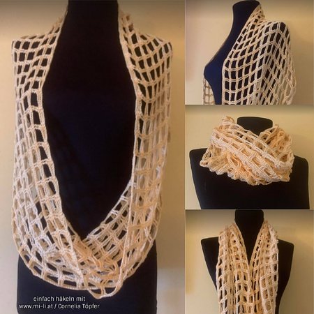 Bequemes, lockeres Häkelshirt zum Drüberziehen und/oder eleganter Loop, der jedes Outfit aufpeppt! Eine Anleitung – 2 superschöne Modelle! Zwei echte Hingucker - egal ob über Top oder Langarmshirt! Flott gehäkelt kann man sich bald darauf freuen, sie auszuführen!